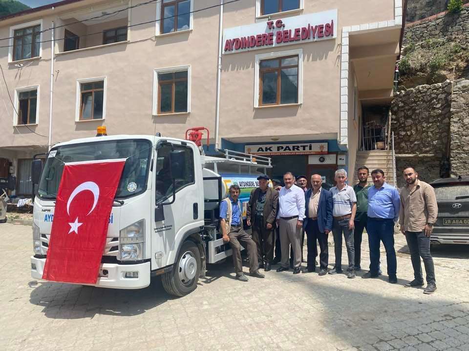 Hafta sonu Aydındere Beldesi belediyesine teslim edilen Arazöz aracı için konuşan Başkan Nuri Demir, “Yeni Arazöz bir nevi itfaiye aracımız olarak iş görecek. Aracın alınmasında başta Cumhurbaşkanımız Recep Tayyip Erdoğan’a, Çevre Şehircilik Ve İklim Değişikliği Bakanımız Murat Kurum’a, Milletvekillerimiz Cemal Öztürk’e, Kadir Aydın’a, Sabri Öztürk’e, AK Parti il Başkanımız Kenan Tatlı’ya AK Parti İlçe Başkanımız Necati Yıldırım’a, Belediye Meclis üyelerimize, emeği geçen herkese teşekkür ediyorum, beldemize hayırlı olsun” dedi.