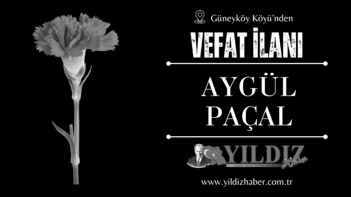 Piraziz Güneyköy'den Bilaloğulları’ndan Temel Paçal'nın eşi; Hamdullah Paçal'ın gelini, Aygül Paçal vefat etti.
