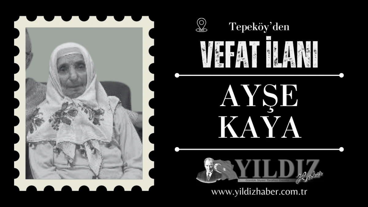 Erdoğan Köyü imamı Yılmaz, Mustafa, Ünzile ve Gülişan Kaya'nın anneleri, Tepeköy eski muhtarı İzzet ve Cemal Gidal'ın ablaları, emekli Halkbank müdürü Mevlüt Kaya'nın yengesi Ayşe Kaya vefat etti. Cenazesi 19 Temmuz 2025 Cumartesi günü (bugün) öğle namazına müteakip Tepeköy Merkez Camii'nde kılınacak cenaze namazının ardından aile kabristanlığında toprağa verilecek. Yıldız Haber olarak merhumeye Allah'tan rahmet, kederli ailesine ve sevenlerine başsağlığı dileriz.