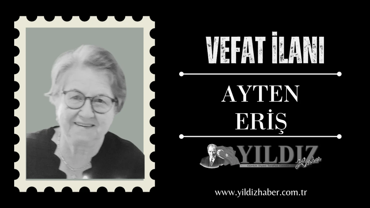 Merhum Nazmiye Özel, Naime Tirali, Mübeccel Güngör ile Sevim Felek, Aygüzen Öğütçü ve Dr. Ünal Turan'ın kardeşleri, Eczacı İlkay Eriş Apaydın, Çetin Eriş ve Nilay Özaltın‘ın sevgili annesi, Ertan Apaydın, Neşe Eriş ve Hikmet Özaltın’ın kayınvalideleri, Çağla Begüm, Alper Utku, Dilara'nın anneannesi ve Ege Bora’nın babaannesi Merhum Enver Eriş’in sevgili eşi Ayten Eriş'in cenazesi 19 Nisan Pazar günü (yarın) Toprakdeğirmeni Mahallesi Akasya Sokakta bulunan evinin önünde yapılacak duadan sonra alınarak, Bulancak Orta Camii’nde öğle namazına müteakip kılınacak cenaze namazından sonra Bulancak eski mezarlığında toprağa verilecek.