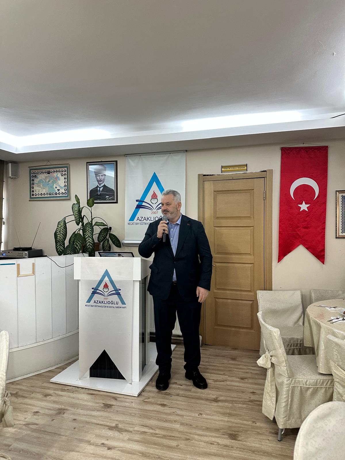 Azaklıoğlu Necati Bay Eğitim, Kültür ve Sosyal Yardım Vakfı tarafından düzenlenen iftar programında bursiyer öğrenciler ve davetliler bir araya geldi.