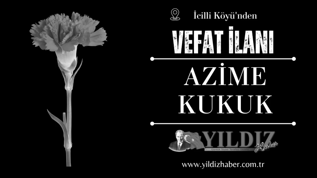 İcilli Köyü'nden, Pıstaloğulları'ndan, Yurtseven Kukuk'un eşi; merhum Mustafa Berber’in kızı; Hacı, Hayrullah ve Muammer Berber’in kardeşleri Azime Kukuk vefat etti.