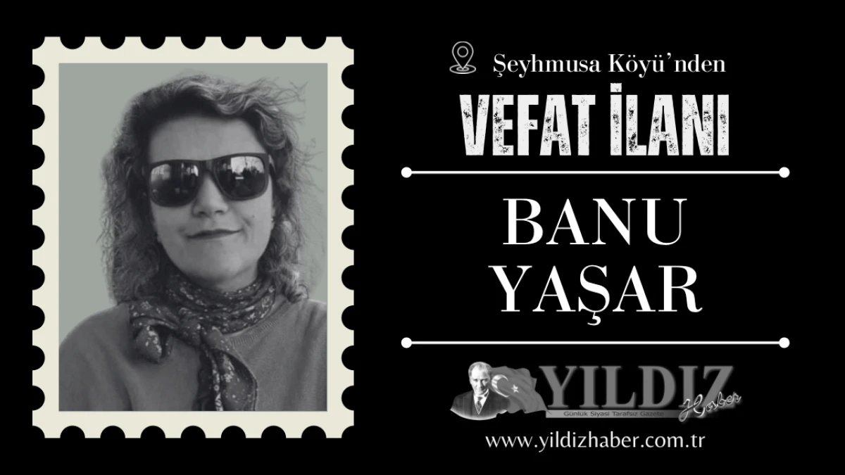 Şeyhmusa Köyü’nden Merhum Sedat Yaşar (Ceyar) ve Zeliha Yaşar’ın kızı, İlkay, Eylem, Gülşah ve Emre Yaşar’ın kardeşleri, Melis, İlayda ve Gökdeniz’in kıymetli anneleri Banu Yaşar vefat etti.