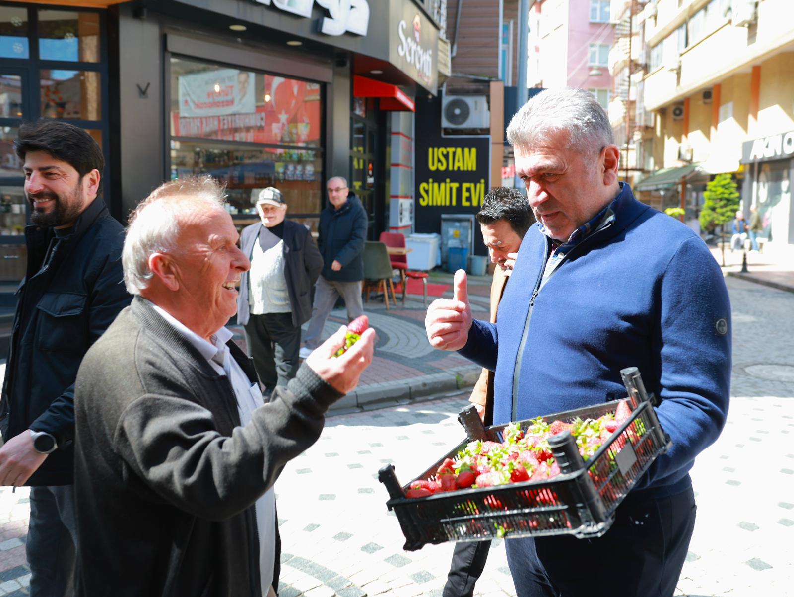 Elinde bir kasa çilekle ilçe merkezinde dolaşan Başkan Sıbıç, karşılaştığı vatandaşlara tek tek çilek tattırarak hem sürpriz yaptı hem de yüzlerde tebessüm oluşturdu. Vatandaşlarla sohbet eden Başkan Sıbıç, bu tür küçük ama anlamlı buluşmaların toplumsal bağları güçlendirdiğini ifade etti.