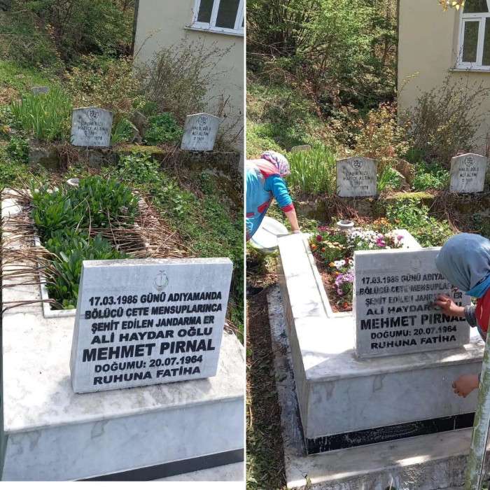 Bayram öncesi bakımdan geçirilen şehit mezarları çiçeklendirildi