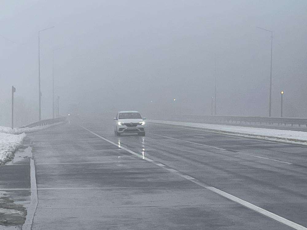 Kar kalınlığının 10 santimetreye ulaştığı ve sis nedeniyle görüş mesafesinin yer yer 35 metreye düştüğü bölgede, araç sürücüleri trafikte dikkatli seyrediyor.