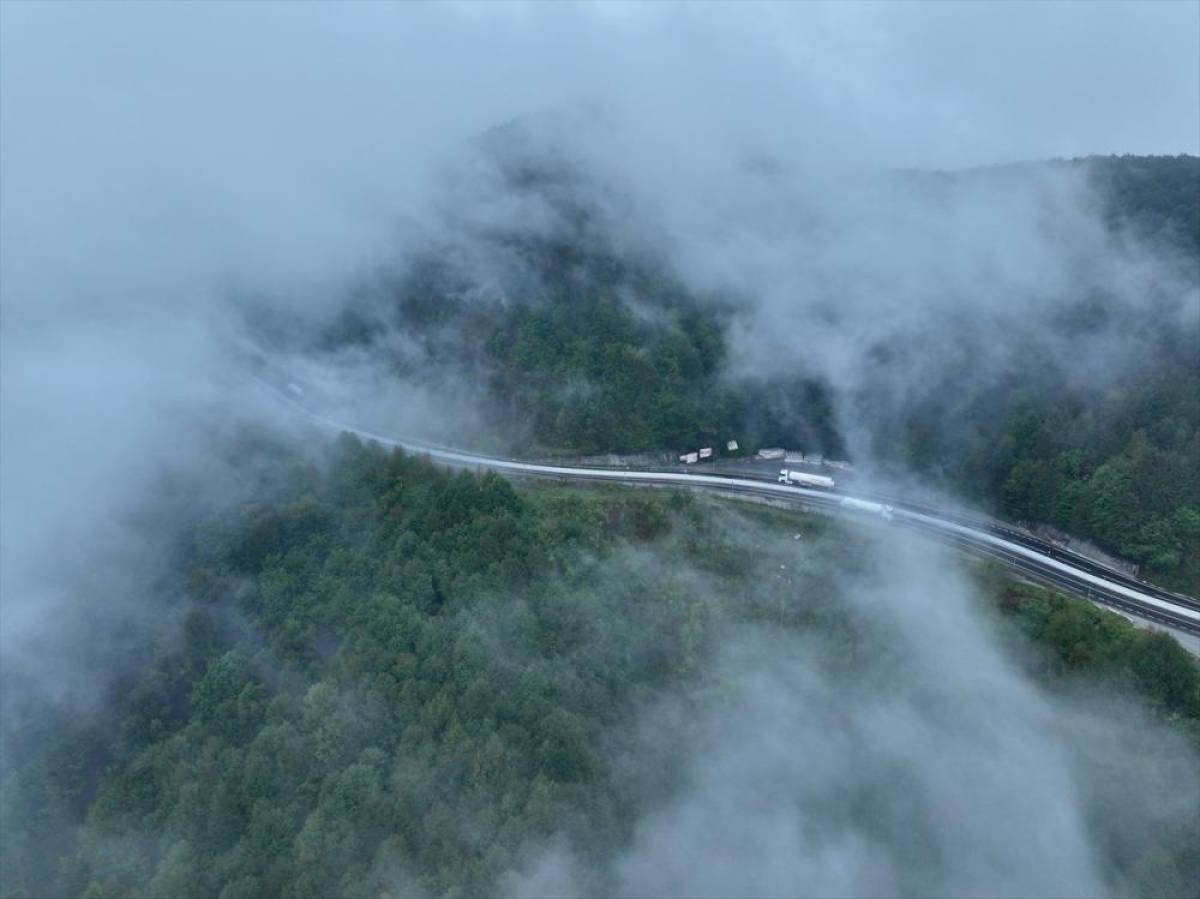 Ankara ve İstanbul arasındaki ulaşımı sağlayan önemli güzergahlardan D-100 kara yolunun Bolu Dağı kesiminde sis ve sağanak görüş mesafesini düşürdü.