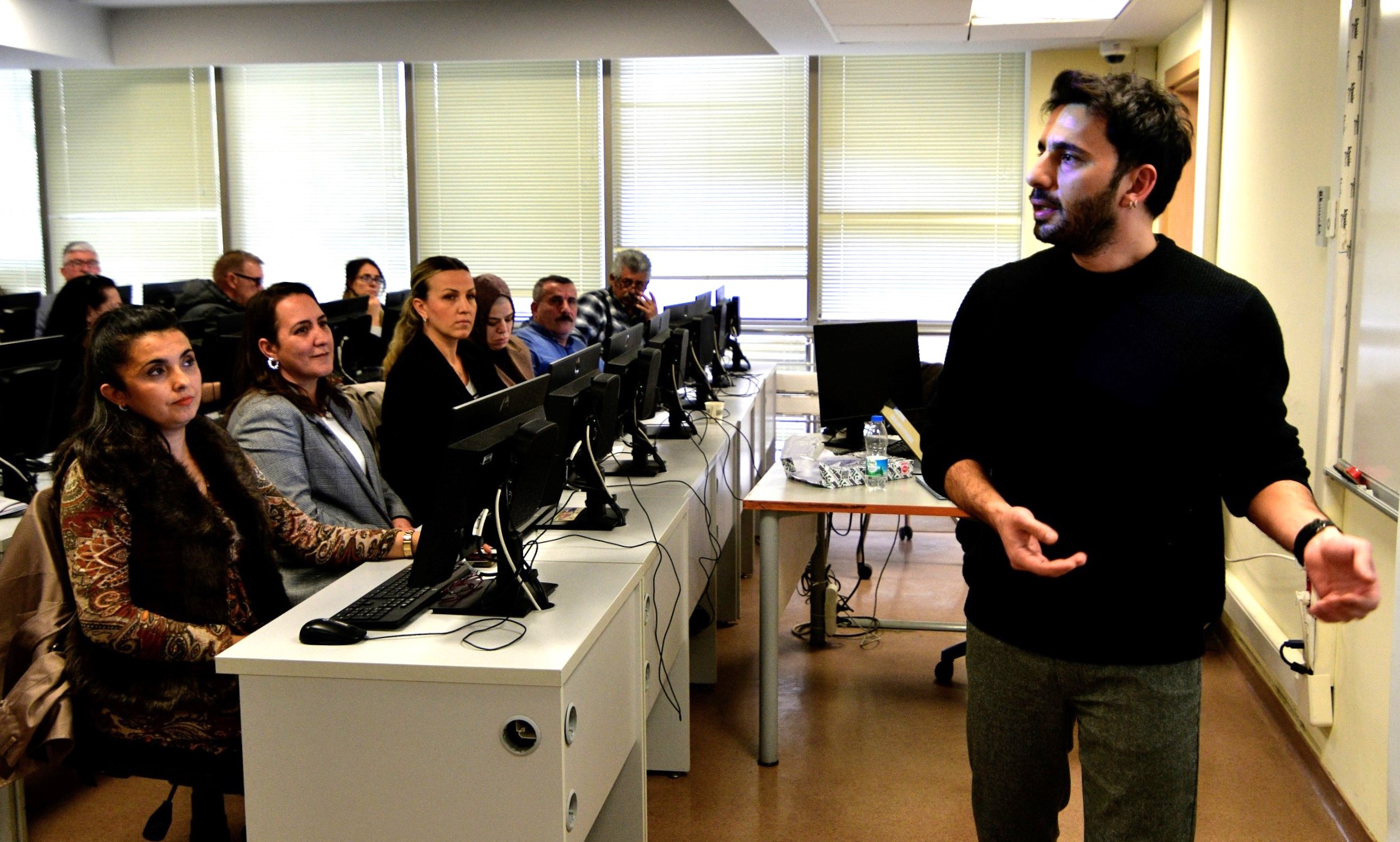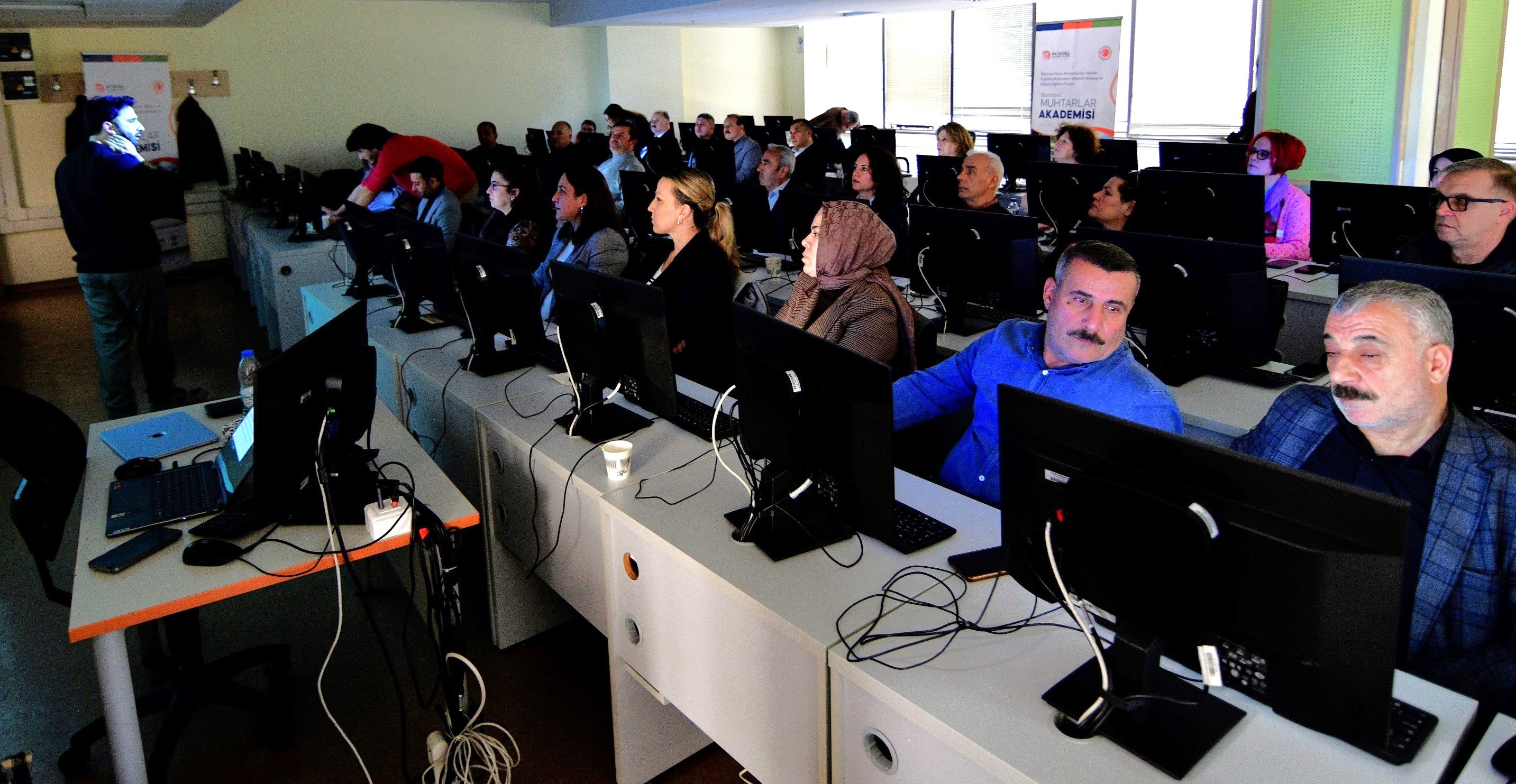 Yaşar Üniversitesi Dr. Öğretim Üyesi Mert Seven tarafından verilen Temel Bilgisayar ve İnternet Kullanımı eğitimi, üniversitenin bilgisayar dersliğinde uygulamalı olarak gerçekleştirildi. Muhtarlar, dijital araçların kamu hizmetlerinde daha etkin kullanımı konusunda bilgi edindi.
