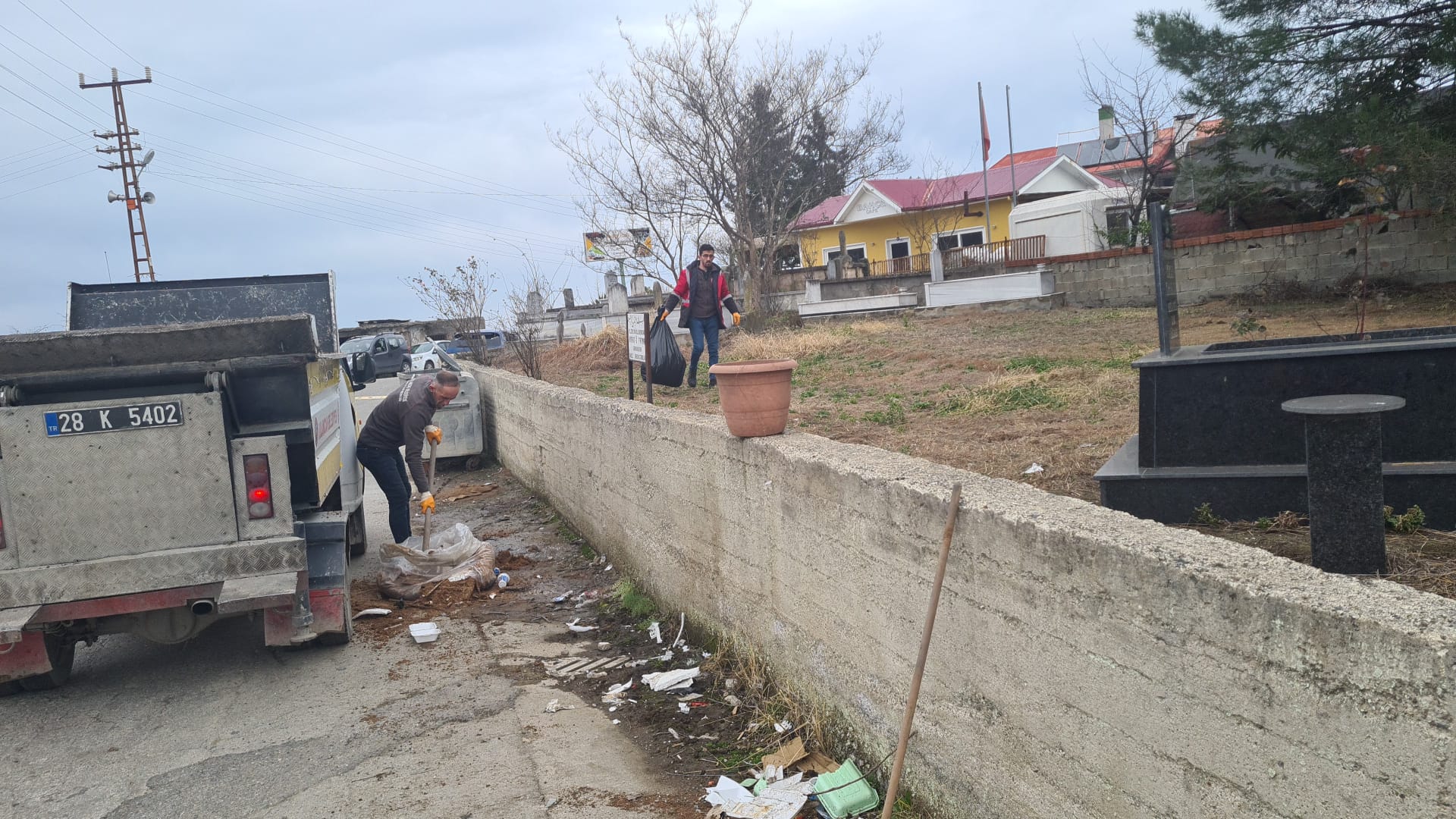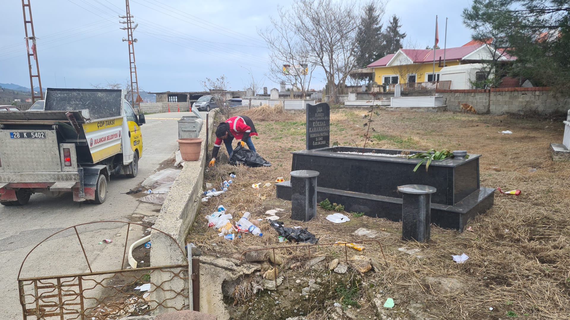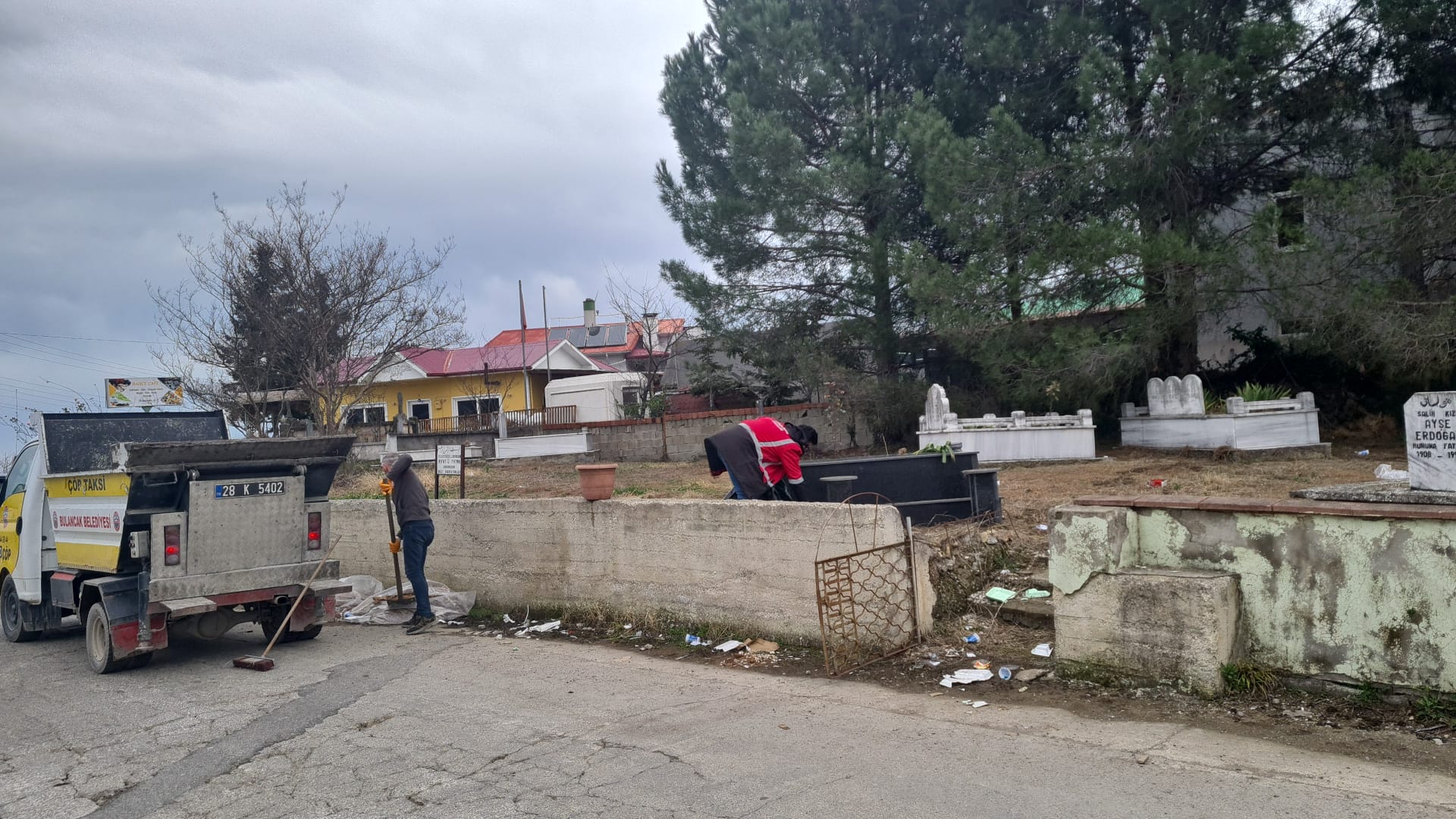 Çalışmalar sırasında mezarlık içi yürüyüş alanları ve ortak kullanım noktalarında biriken atıklar toplanırken, genel çevre düzeni sağlanarak alan daha temiz bir görünüme kavuşturuldu.