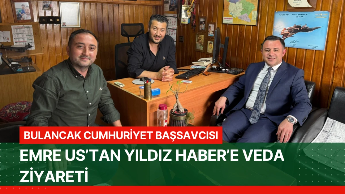 Başsavcı Emre Us, son veda ziyaretlerinden birini de Yıldız Haber ailesine gerçekleştirdi. Yıldız Haber Gazetesi Yazı İşleri Müdürü Sinan Yıldız ve yildizhaber.com.tr Haber Müdürü Samet Yıldız ile bir araya gelen Emre Us, hem teşekkürlerini iletti hem de vedalaştı.