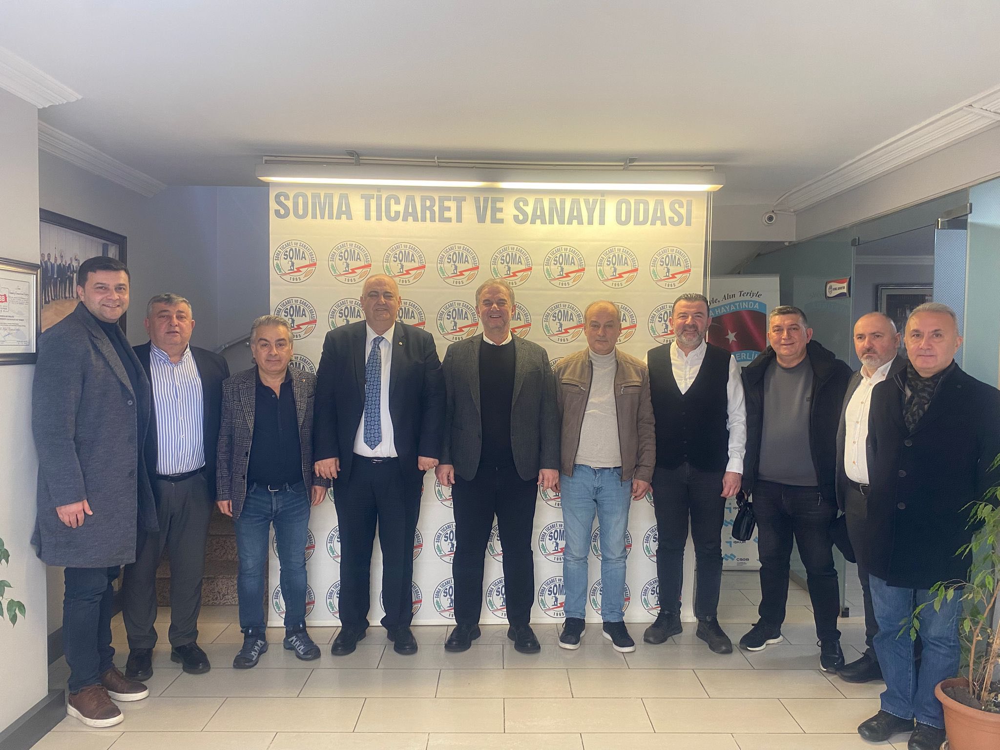 Programın devamında Soma Ticaret ve Sanayi Odası’na ziyaret gerçekleştirildi. Görüşmede Soma TSO Yönetim Kurulu Başkanı Cem Doğan ile bir araya gelinerek oda çalışmaları ve iş dünyasına yönelik başlıklar ele alındı.