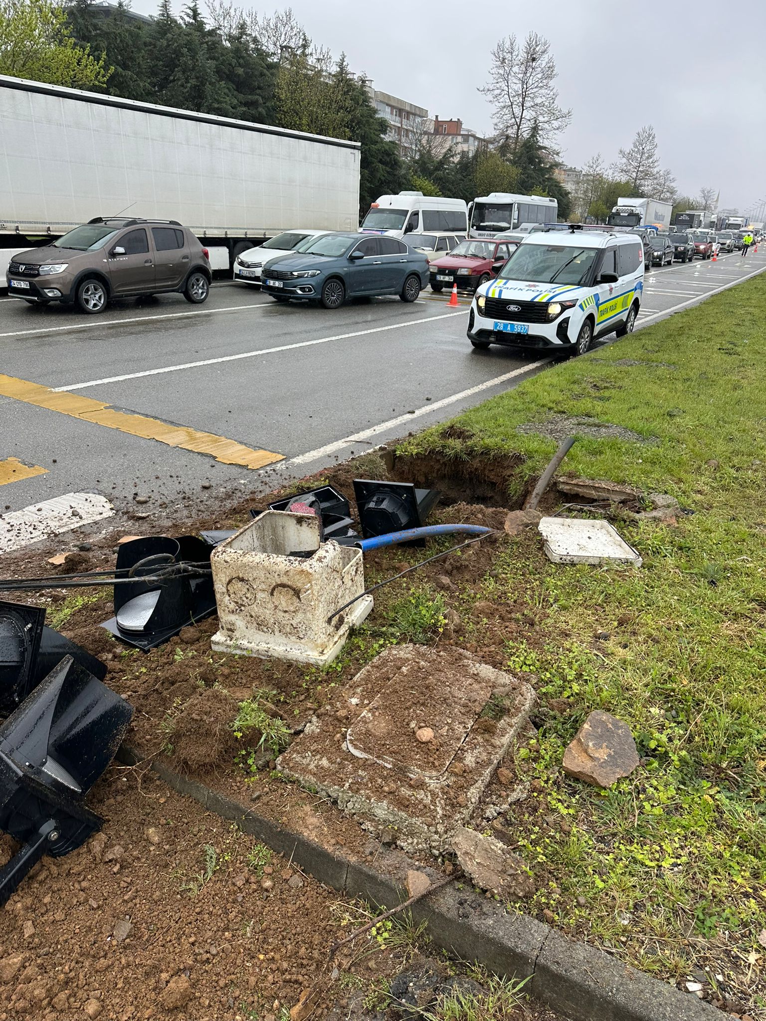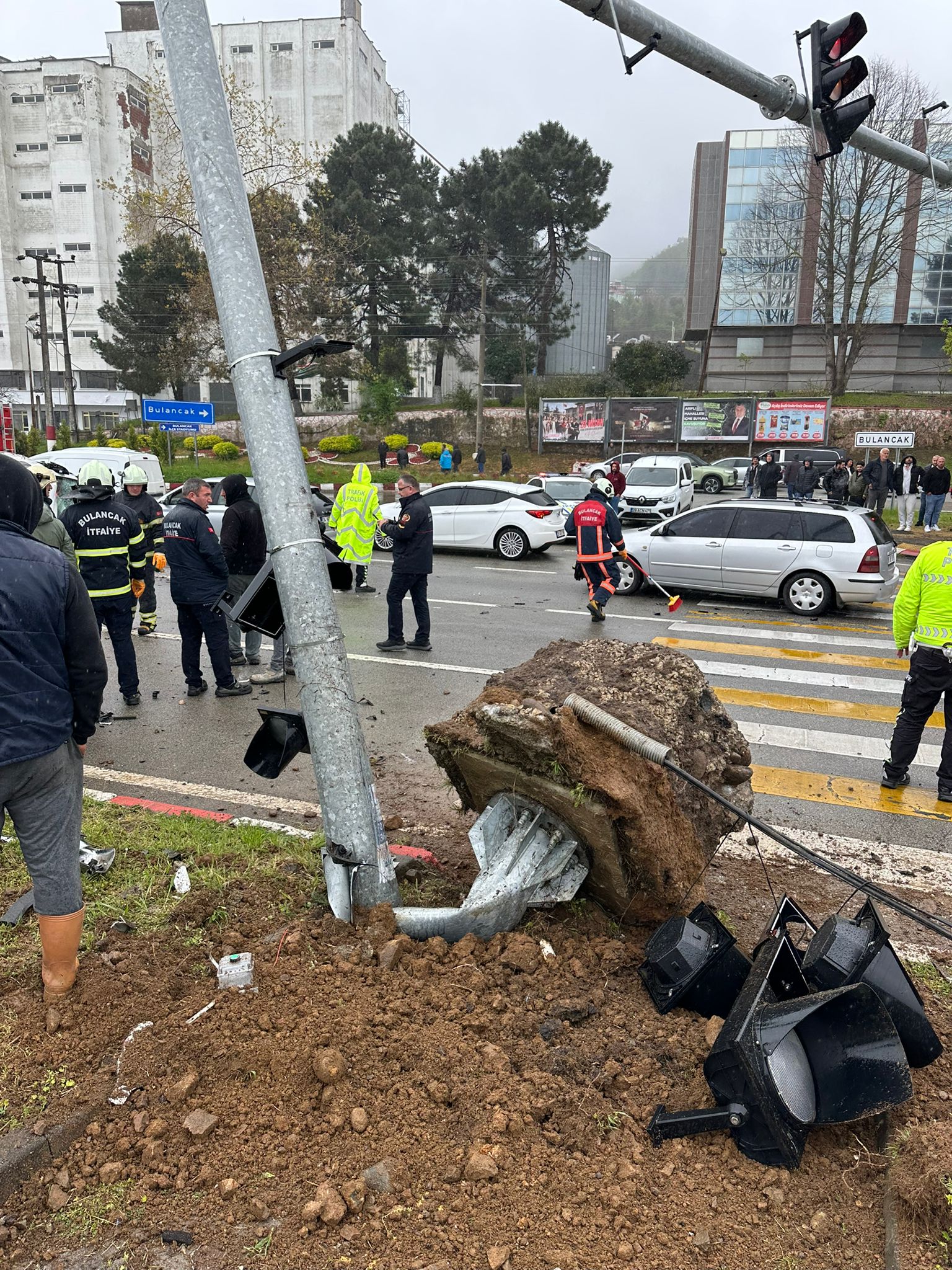 Bulancak Fatoğlu Kavşağı’nda trafik lambasının yerinden söküldüğü kazayla ilgili inceleme başlatıldı.