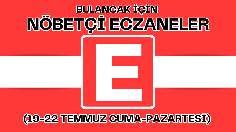 19 Temmuz Cuma günü, 20 Temmuz Cumartesi sabahına kadar Melis Eczanesi nöbetçidir. İhsaniye Mah. 15 Temmuz Cad. No:100/B 04543183534