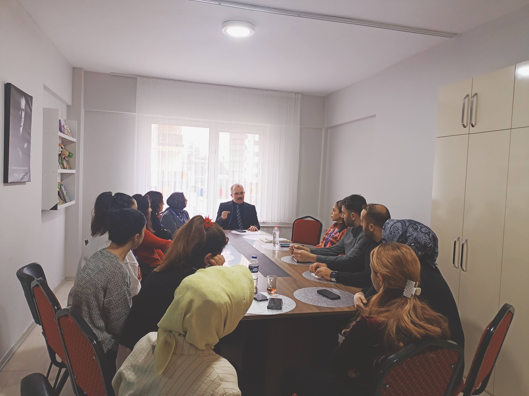 Ziyarette öğretmenlerle bir araya gelen Müdür Bulut, eğitim-öğretim süreçleri ile okulda yürütülen faaliyetler hakkında bilgi aldı.