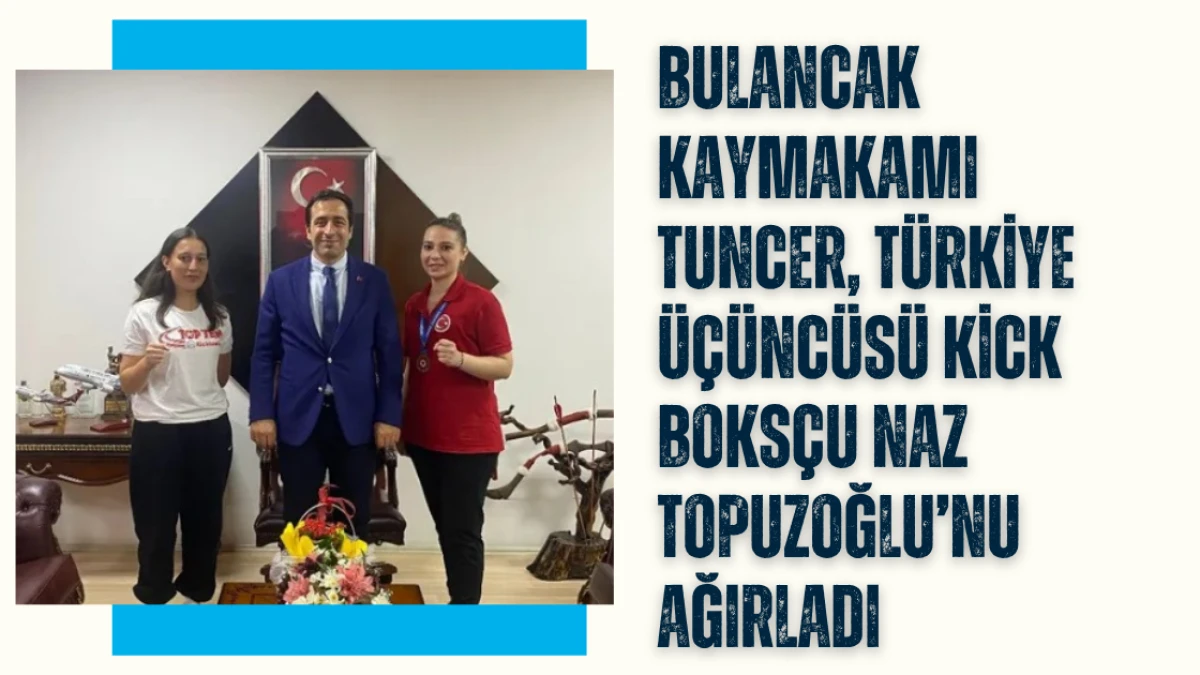 Bulancak Kaymakamı Ömer Faruk Tuncer, Kick Boks Türkiye Şampiyonası’nda üçüncülük elde ederek ilçeye büyük gurur yaşatan Naz Topuzoğlu’nu ve Antrenörü Beyza Kırım’ı makamında ağırladı.