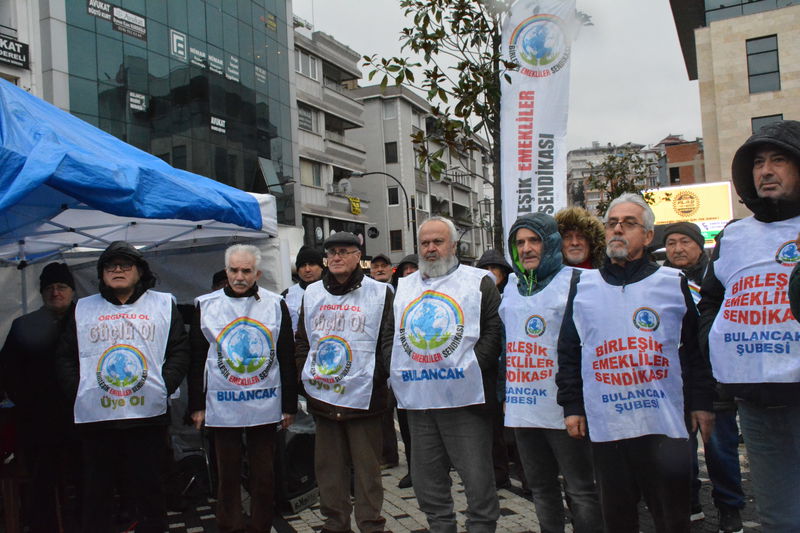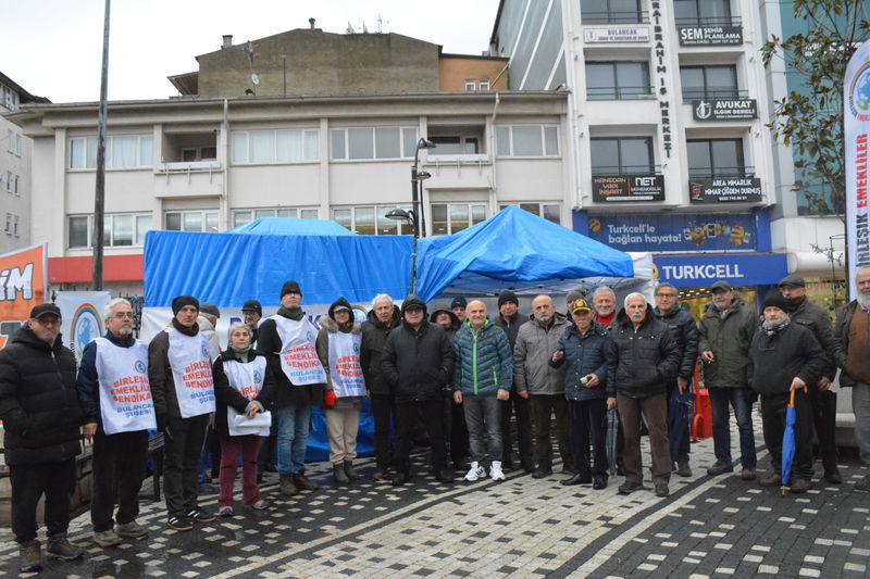 Birleşik Emekliler Sendikası Bulancak Şubesi, 16 Ocak Cuma günü Bulancak Cumhuriyet Meydanı’nda yağmura rağmen çadır kurarak nöbet ve oturma eylemi gerçekleştirdi.