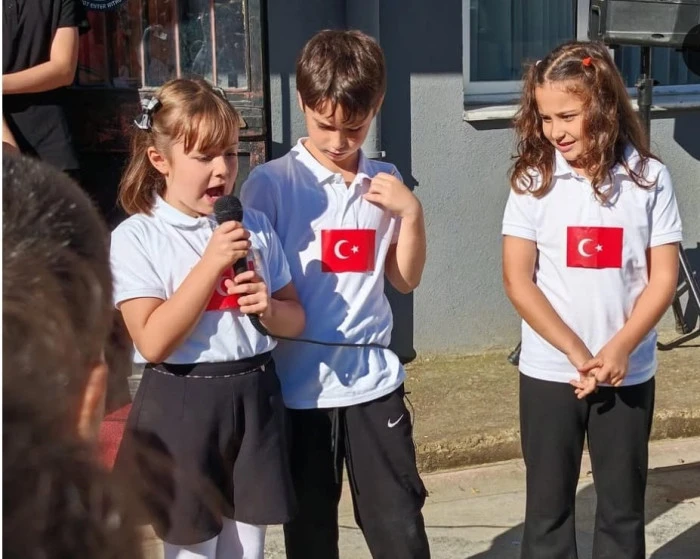 Cumhuriyetin 102. yılı etkinliği, öğrencilerin gurur dolu yüzleri ve ellerinde dalgalandırdıkları Türk bayraklarıyla sona erdi.
