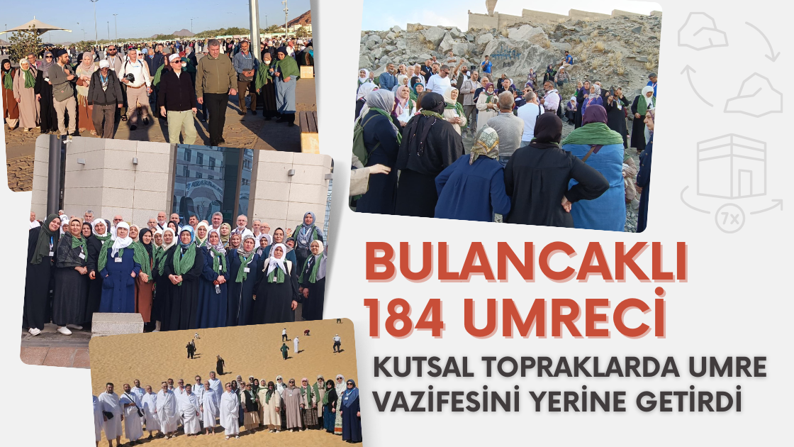 Umrecilerin manevi yolculuklarında kafile görevlileri Osman Öztürk, Metin Aktaş, Aytekin Şahin, Aydın Kılıç, Osman Bay, İsmail Sarıgül ve Aynur Yavuz rehberlik etti. Kutsal topraklardaki ziyaret ve ibadetlerini tamamlayan Bulancaklı umreciler, 21 Şubat'ta memleketlerine dönecekler.