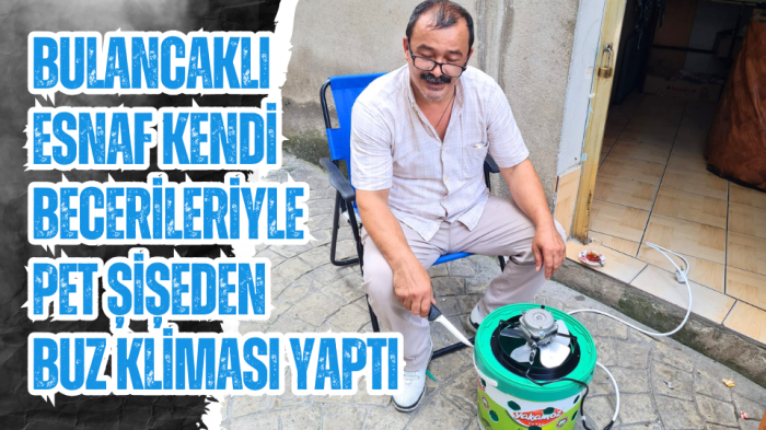 Esnaflardan biri Bulancak Dostlar Kasabında çalışan Ergün Bayraktaş internette gördüğünü uygulayarak pet şişeden Buz kliması yaptı.