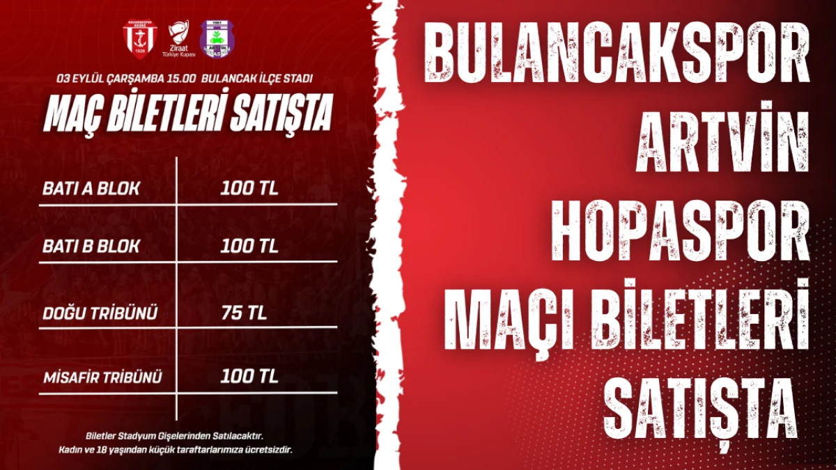 Ziraat Türkiye Kupası heyecanı Bulancak’ta başlıyor. 03 Eylül Çarşamba günü saat 15.00’te Bulancak İlçe Stadı’nda 1926 Bulancakspor ile Artvin Hopaspor karşı karşıya gelecek.