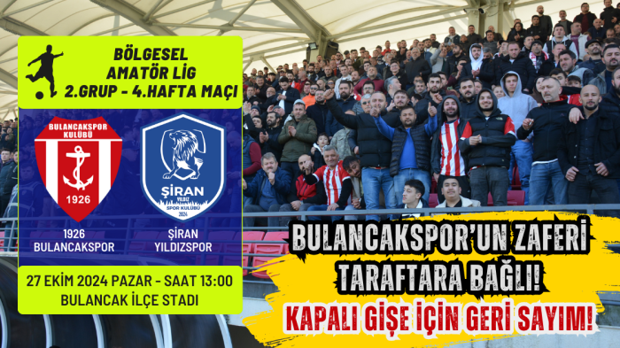 Bu sezon, aynı puana sahip rakibi Şiran Yıldızspor’un averajla önünde lider olan 1926 Bulancakspor, ev sahibi olmanın avantajını iyi kullanarak puan farkını açmak istiyor. Bu noktada taraftar desteği, takımı ileriye taşımada kritik bir rol oynayacak. Geçen sezon Çayelispor’u 2-1 yenerek kapalı gişe oynayan Bulancakspor, bu sezon da tribünlerin dolmasını bekliyor.