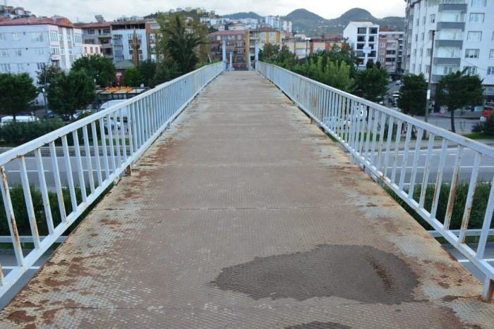 Yaklaşık 30 yıl önce, iki yönlü trafik akışı sırasında yaya güvenliğini sağlamak amacıyla yapılan üst geçit, aradan geçen uzun yıllar boyunca gerekli bakımların yapılmaması nedeniyle çürüme ve paslanma sorunlarıyla karşı karşıya kaldı.
