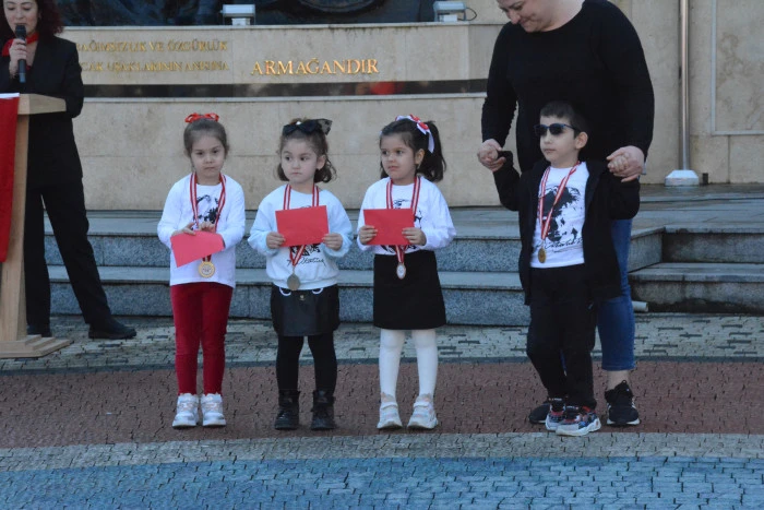 Saat 11.30’da ilçe meydanında gerçekleştirilen törende öğrenciler, öğretmenler ve veliler bir araya gelirken, programda çeşitli gösteriler ve ödül töreni yer aldı.