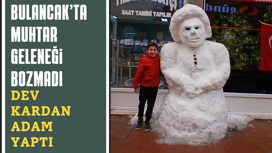 Sabah saatlerinde etkili olan kar yağışının ardından kardan adam yapımına başlayan Muhtar Yıldırım, bölge halkının ilgisini çekmeyi başardı. Yoldan geçen vatandaşlar, kardan adamla bol bol fotoğraf çektirerek karın keyfini çıkardı.