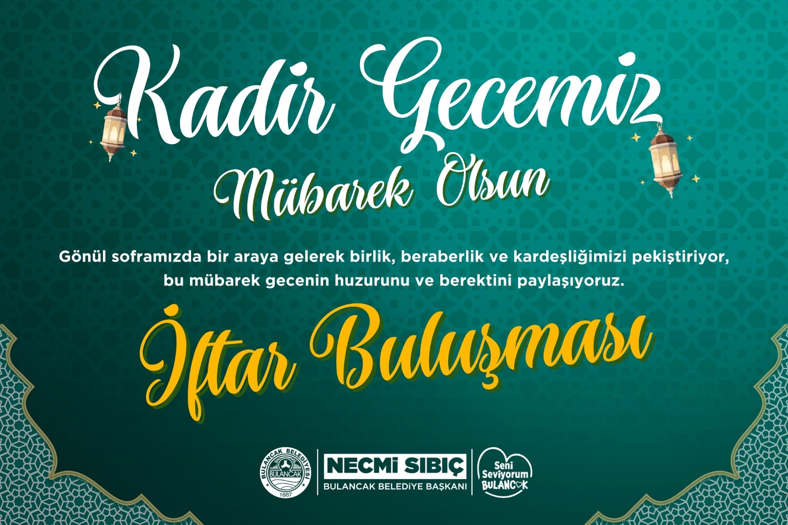 Konuya ilişkin açıklama yapan Belediye Başkan Sıbıç, Ramazan ayının kardeşlik ve paylaşma duygularını güçlendirdiğini belirterek, “Rahmet ve mağfiret kapılarının ardına kadar açıldığı Kadir Gecemizde Bulancak Belediyesi olarak düzenleyeceğimiz iftar programında hemşehrilerimizle aynı sofrada buluşmanın mutluluğunu yaşayacağız. Bu manevi atmosferi yalnızca ilçemizde yaşayan vatandaşlarımızla değil, gurbette bulunan hemşehrilerimizle de paylaşmak istiyoruz” dedi.
