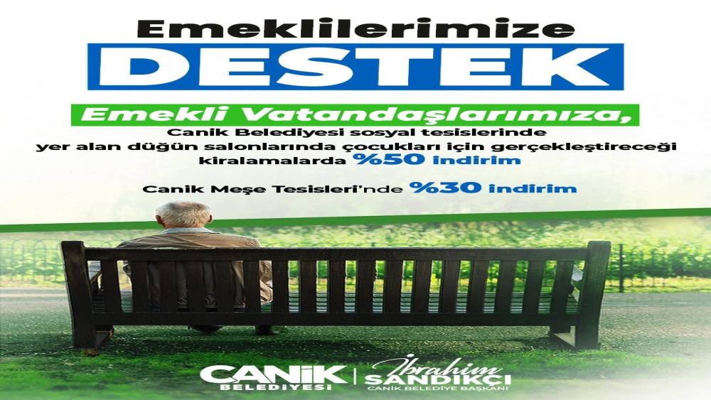 Canik Belediyesi, emekli vatandaşlara ekonomik destek sağlayan ve onların sosyal refah düzeyini arttırmaya yönelik uygulamalarıyla takdirleri toplamaya devam ediyor. Canik Belediye Başkanı İbrahim Sandıkçı, emekli vatandaşların sosyal refah düzeyine katkı sağlamaya yönelik yeni projeler üzerinde yoğun bir şekilde çalışmaya devam ettiklerini ifade ederek, emekli vatandaşlara belediyeye ait düğün salonlarında çocukları için gerçekleştireceği kiralama işlemlerinde yüzde 50, Canik Meşe Tesisleri’nde yüzde 30 indirim uygulamasını sürdürdüklerini kaydetti.