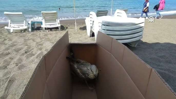 Çakmak, denizden çıkardığı martıyı kutuya koyarak Akçakoca Orman İşletme Müdürlüğüne götürdü.
