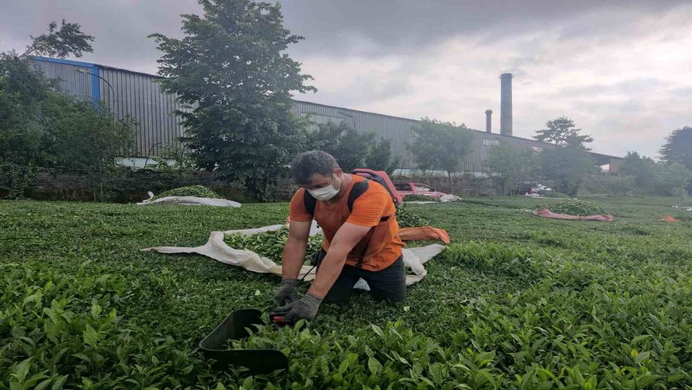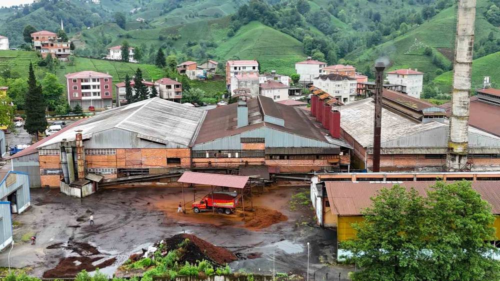 Trabzon’un Of ilçesine bağlı Pınaraltı Mahallesinde bulunan ÇAYKUR’a ait çay fabrikasının bacasından çıkan kömür tozu çay bahçelerine yağıyor.