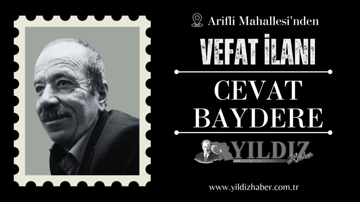 Alaattin ve Secattin Baydere’nin ağabeyi; İdris, İsa ve Musa Baydere'nin babaları; Cevat Baydere vefat etti. Cenazesi 25 Aralık 2025 Perşembe günü (bugün) ikindi namazına müteakip Arifli Mahallesi Merkez Camii'nde kılınacak cenaze namazından sonra aile kabristanlığında toprağa verilecek. www.yildizhaber.com.tr olarak merhuma Allah’tan rahmet, ailesine ve sevenlerine başsağlığı dileriz.
