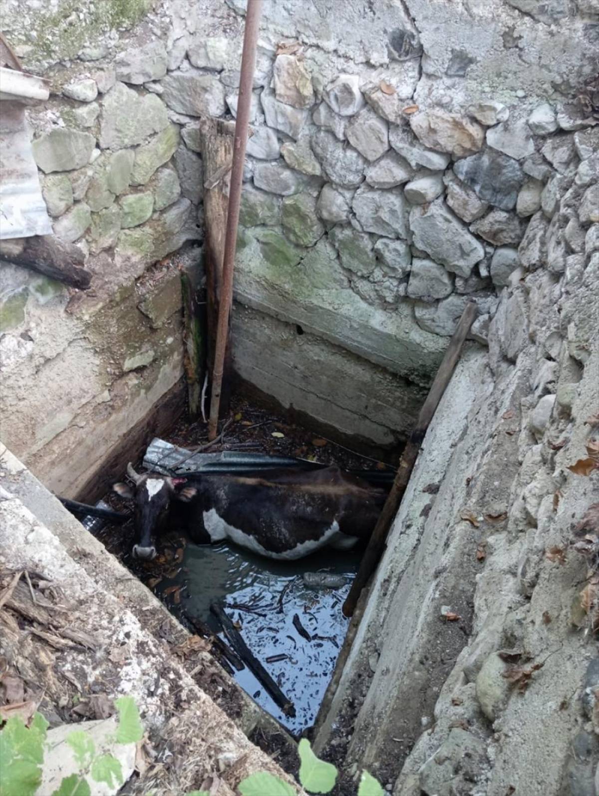 İlçeye bağlı Alpagut köyünde Mustafa T'ye ait bahçeye giren inek, su kuyusuna düştü.