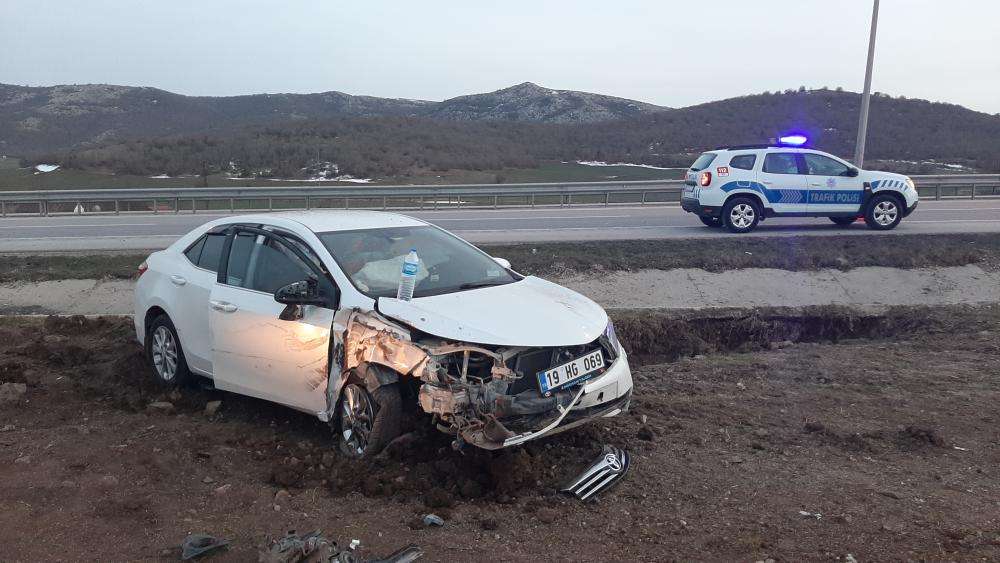 Cihat Ö. (37) idaresindeki 19 HG 069 plakalı otomobil, Samsun-Ankara kara yolu Çorum Kaymakçı mevkisinde sürücüsü öğrenilemeyen 33 VN 574 plakalı tır ile çarpıştı.