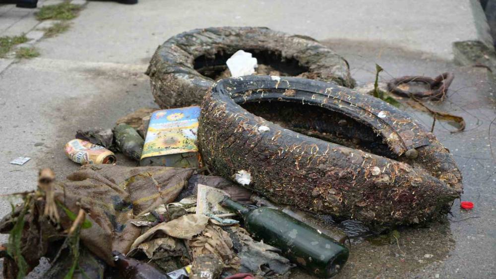 Denizden çıkan atıklar minikleri de şaşırttı: Lastik tekerlekler, teneke kutular