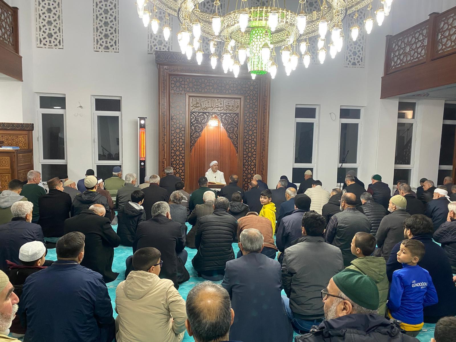 Depremde zarar gören bir caminin yerine yeni bir cami inşa ettiren aile fertleri, yapımı tamamlanan camide ilk teravih namazını kıldı.
