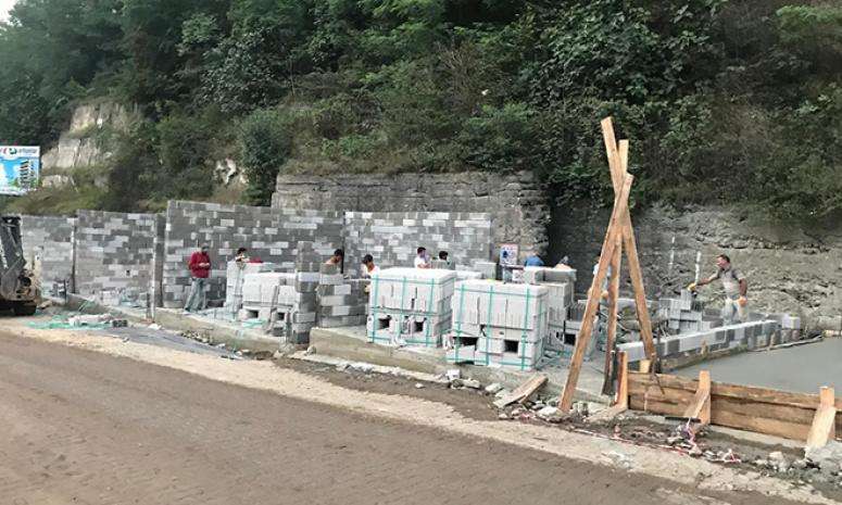 Giresun'daki selden etkilenen Dereli ilçesinde yıkım kararı alınan binalardaki esnafın geçici olarak taşınacağı 120 dükkanın inşasına başlandı.