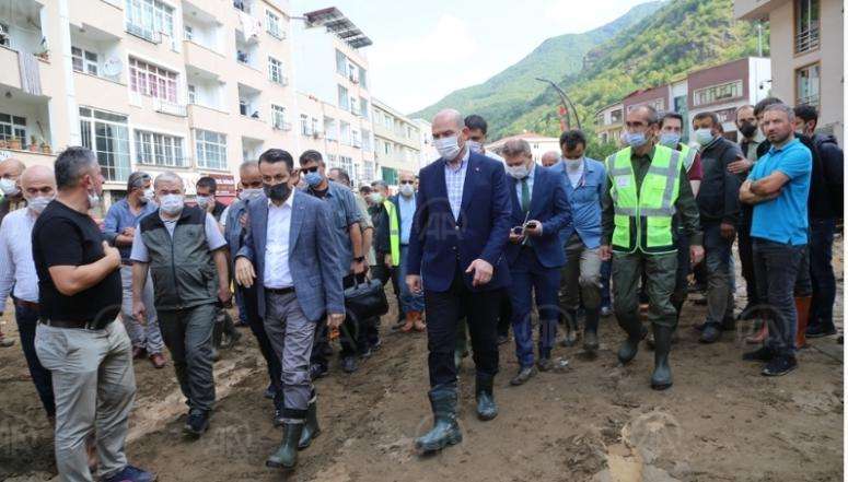 İçişleri Bakanı Süleyman Soylu, Tarım ve Orman Bakanı Bekir Pakdemirli, DSİ Genel Müdürü Kaya Yıldız, AK Parti Milletvekilleri Hasan Turan ve Sabri Öztürk, sel ve heyelandan büyük ölçüde etkilenen Dereli ilçe merkezinde incelemelerde bulundu. Bakan Soylu ve Pakdemirli, yetkilerden bilgiler aldılar.