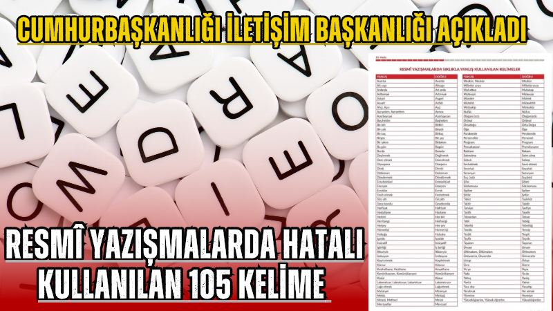 T.C. Cumhurbaşkanlığı İdari İşler Başkanlığı, resmî yazışmalarda en çok hata yapılan 105 kelimeyi kamuoyuyla paylaştı.