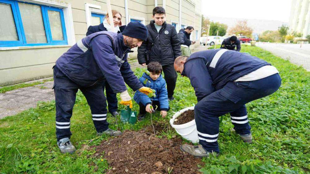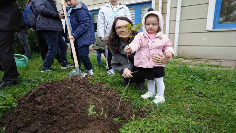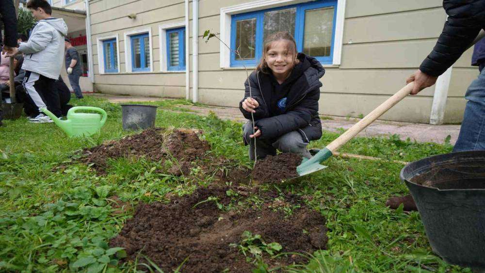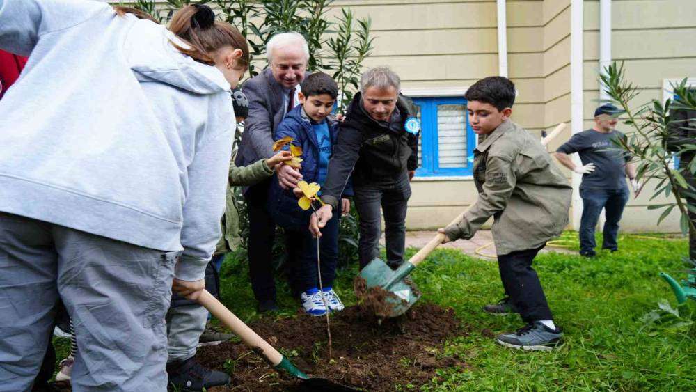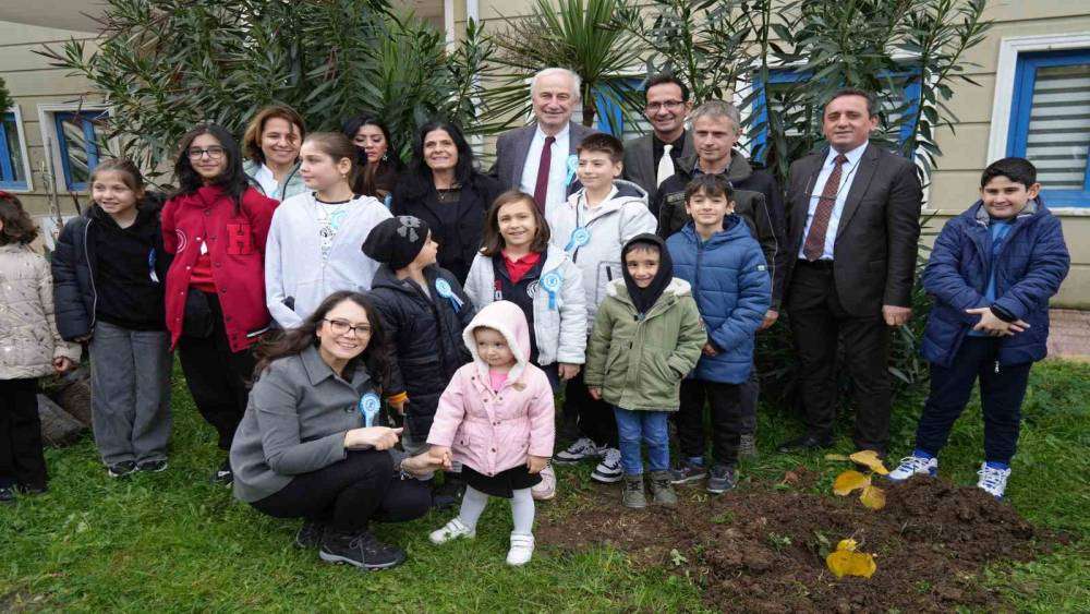 Konuşmalarının ardından diyabetli çocuklar, 20 adet erguvan fidanını toprakla buluşturdu.