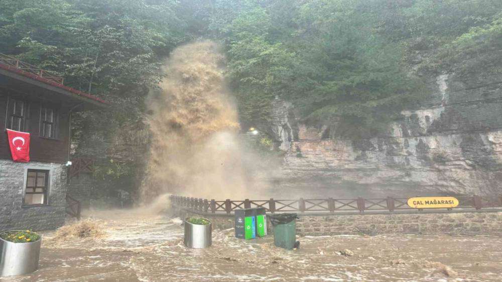 Doğu Karadeniz Bölgesi’nde son günlerde etkili olan yağışlar önemli turizm merkezlerinden biri olan Çal Mağarası’nı da etkiledi. Trabzon’un Düzköy ilçesine bağlı Çalköy’de bulunan ve dünyanın en uzun ikinci mağarası olarak kabul edilen Çal Mağarası’nın üst kısmında bulunan şelale yağmur sularının etkisiyle taştı. Taşan sular mağaranın girişini bir süre engellerken, o esnada içeride bulunan turistler tedbir amaçlı bekletildi. Bazı vatandaşların ise mağaradan çıkışı saniye saniye kaydedildi. Daha önceki yıllarda da benzer şekilde sel görüntüleri yaşanmış, sel tahribata yolaçmıştı.