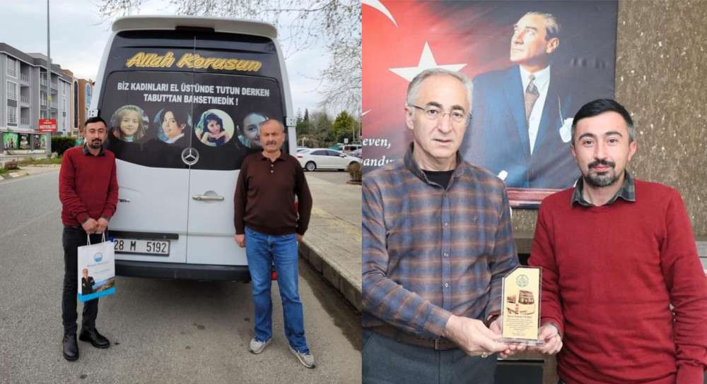 Piraziz - Giresun dolmuş durağında çalışan Erdem Yıldız ‘Kadına Yönelik Şiddete Karşı’ dikkat çekmek için aracına yaptırmış olduğu fotoğrafla toplumun takdirini aldı.