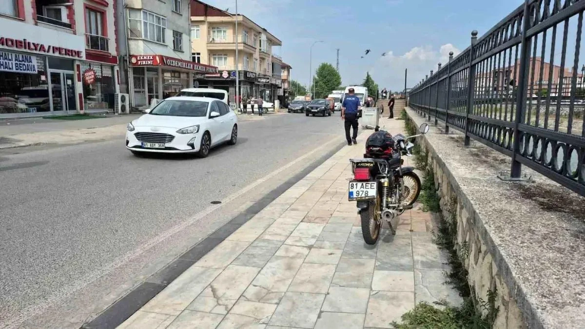 Düzce'de motosikletin çarptığı yaya ve sürücü yaralandı.