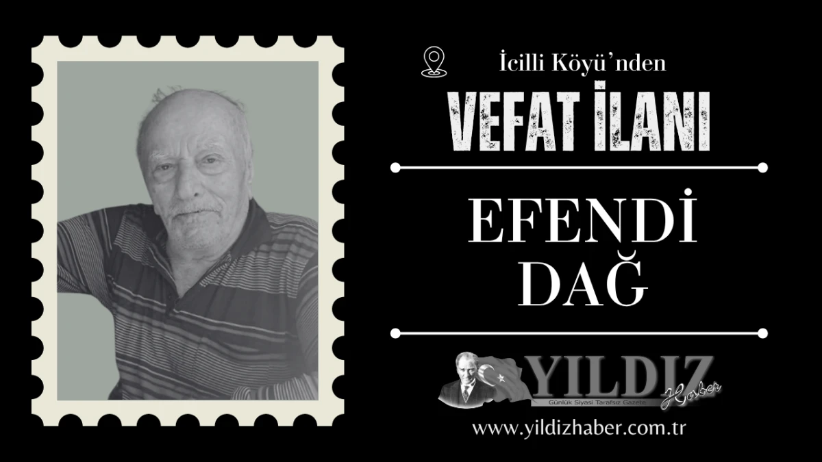 İcilli Köyü'nden, Paşaoğulları'ndan, merhum Mehmet ve Murat Dağ'ın babası Efendi Dağ vefat etti.