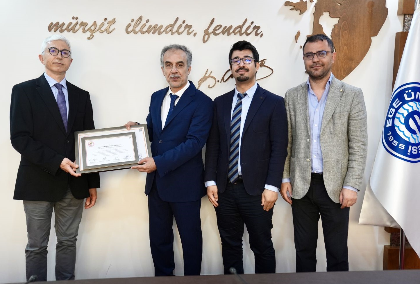 “Uzmanlık Eğitimi Yeterlilik Sertifikası” almaya hak kazanan Tıbbi Onkoloji Anabilim Dalına belge sunuldu. İletişim Araştırmaları Derneği tarafından beş yıl süreyle akredite edilen EÜ’si İletişim Fakültesi Reklamcılık ile Halkla İlişkiler ve Tanıtım Bölümlerinin akreditasyon belgeleri, Prof. Dr. Alcı tarafından bölüm başkanlarına verildi. Prof. Dr. Alcı, 2025 yılı YÖK Engelsiz Üniversite Ödülleri kapsamında ödül alan ve aday olmaya hak kazanan birimlerin elde ettiği başarıyı senato üyeleriyle paylaşarak, “Engelsiz Ege” vizyonuyla kararlılıkla sürdürülen çalışmalar sonucunda kazanılan Belge ve Bayrak Ödülleri dolayısıyla birimleri kutladı.