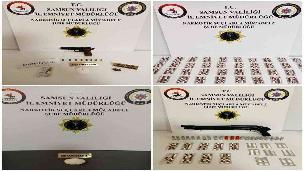 Edinilen bilgiye göre, Samsun Emniyet Müdürlüğü Narkotik Suçlarla Mücadele Şube Müdürlüğü ekipleri, Özel Harekat Şube Müdürlüğü ekiplerinin de desteğiyle bu sabah İlkadım ve Atakum ilçelerinde eş zamanlı uyuşturucu operasyonu düzenledi. Operasyon kapsamında 14 şüpheli gözaltına alındı. Yapılan aramalarda, 786 sentetik ecza, 62 gram metamfetamin, 1 adet ruhsatsız tabanca, 1 adet ruhsatsız tüfek, 23 gram sentetik kannabinoid, 5 adet extacy, 4 uyuşturucu madde kullanım aparatı, 36 adet tabanca fişeği ve 23 adet kartuş ele geçirildi.