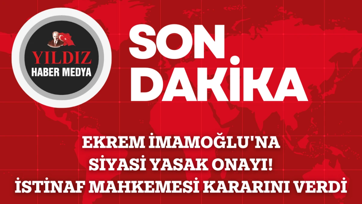 İstanbul Büyükşehir Belediye Başkanı Ekrem İmamoğlu, siyasi yasak da içeren "haklardan yoksun bırakma" cezasıyla ilgili davada İstinaf Mahkemesi'nden onama kararı aldı.