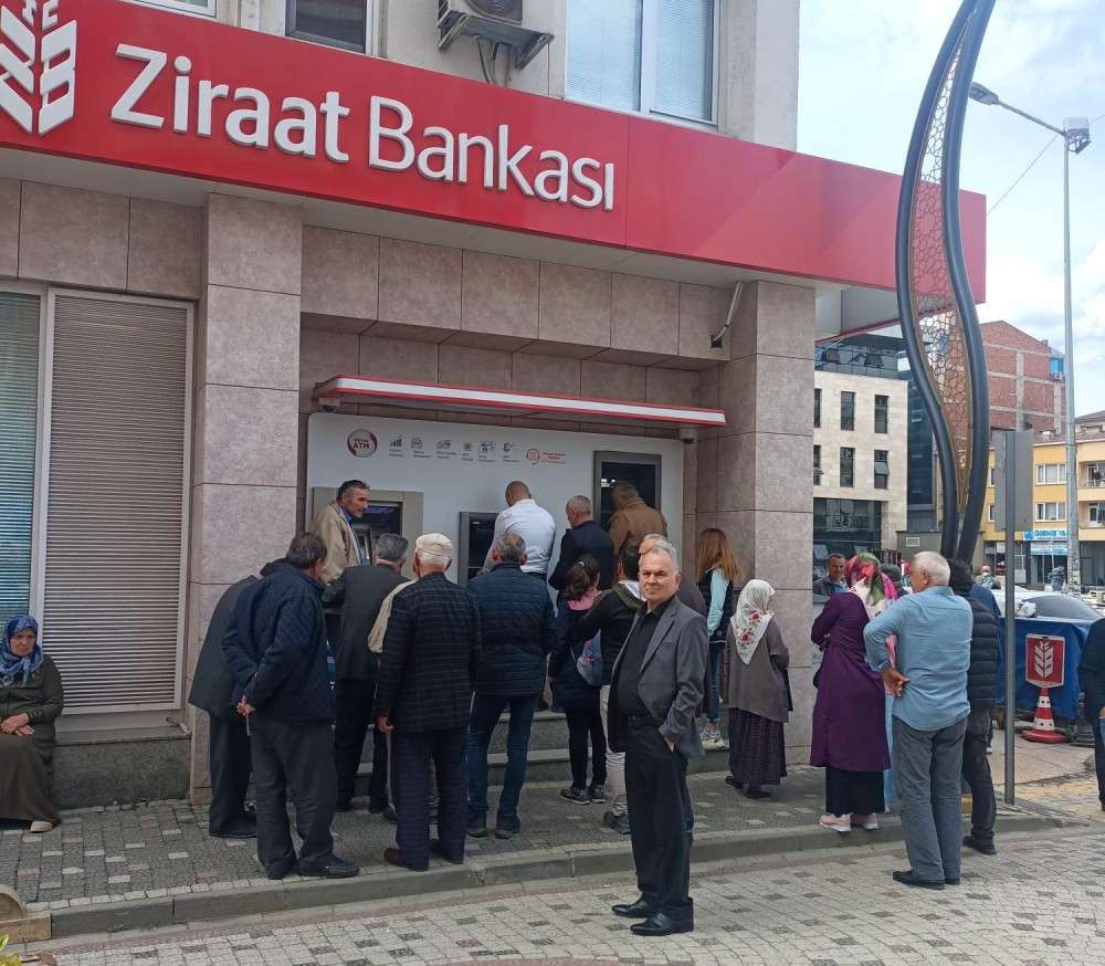 Bulancak’ın köylerinden gelen insanlar, bayram öncesinde hem Salı pazarına uğramak hem de emekli maaşları ve ikramiyelerini almak istemesi, banka hem içlerinde hem de önlerinde uzun kalabalıkların oluşmasına neden oldu.