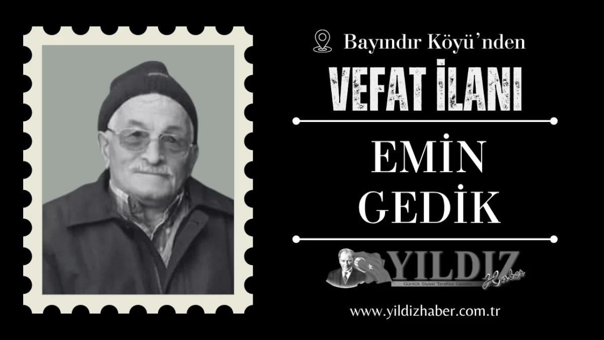 Bayındır Köyü’nden, Araboğuları’ndan, merhum Hasan Gedik’in oğlu; Özcan, Muharrem, Sevgi, Nurcan ve Bulancak Belediyesi personellerinden Ahmet Gedik’in babası, Emin Gedik vefat etti.